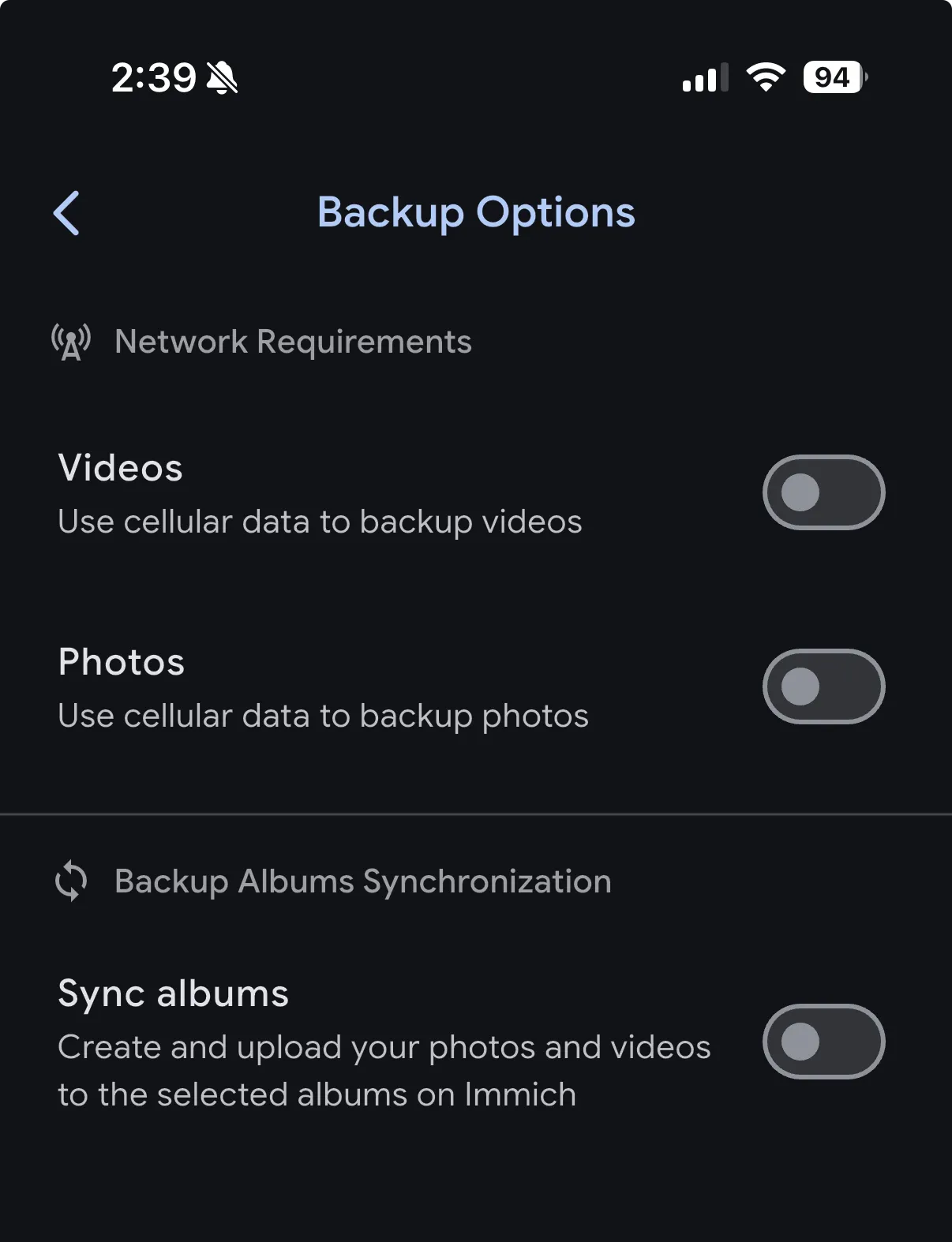 You can select which albums on your mobile device to back up to the server. You can also exclude specific albums (by double-tapping on them) from being backed up. This is useful for iOS users since assets can belong to multiple albums. For example, you may want to back up all assets except those in the "Videos" album.